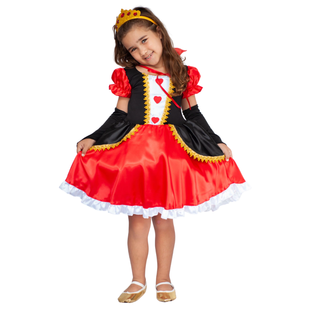 Fantasia Infantil Luxo Rainha de Copas | Alice no País das Maravilhas | Festa à Fantasia | Cosplay